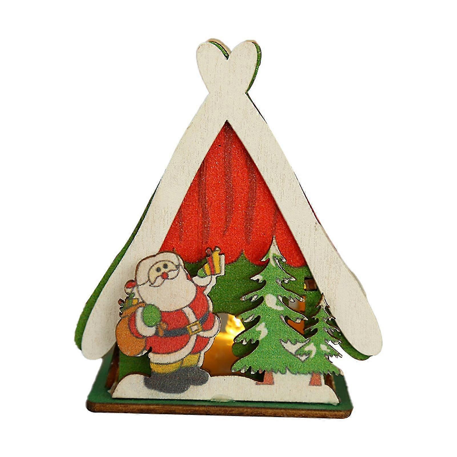 Luminous Xmas Pendant With Lanyard Wood Led Light Decoration Christmas Cabin For Halloween Y