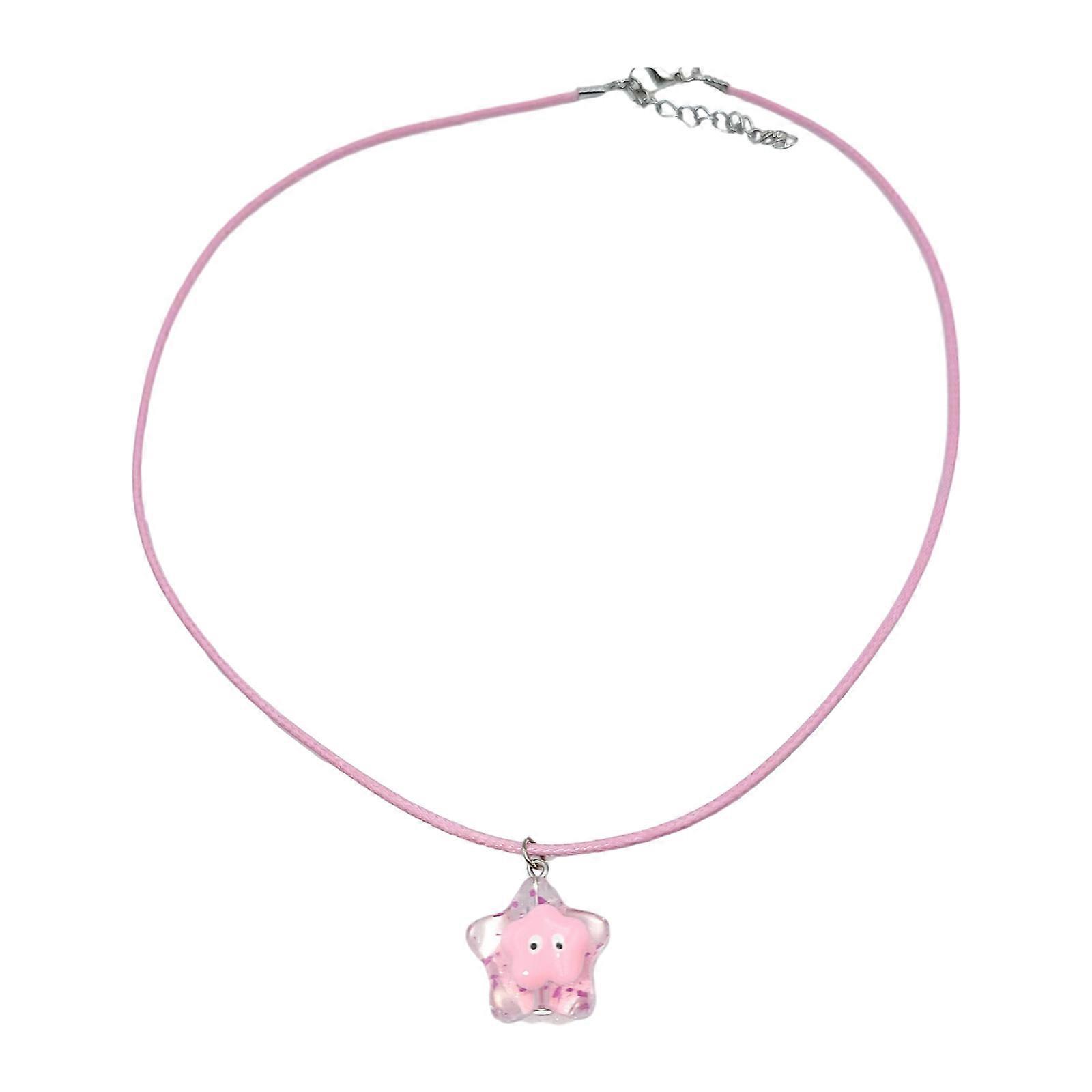 Korean Star Pendant Necklace Adjustable Wax Rope Clavicle Chain for Women Elegant Choker Sweater Chain Y2k Party Jewelry Pink