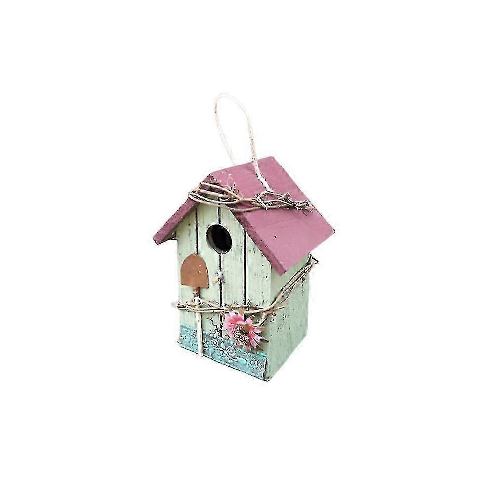Wooden Bird House Pendant with Red Roof Ideal Outdoor & Home Garden Decoration Gift