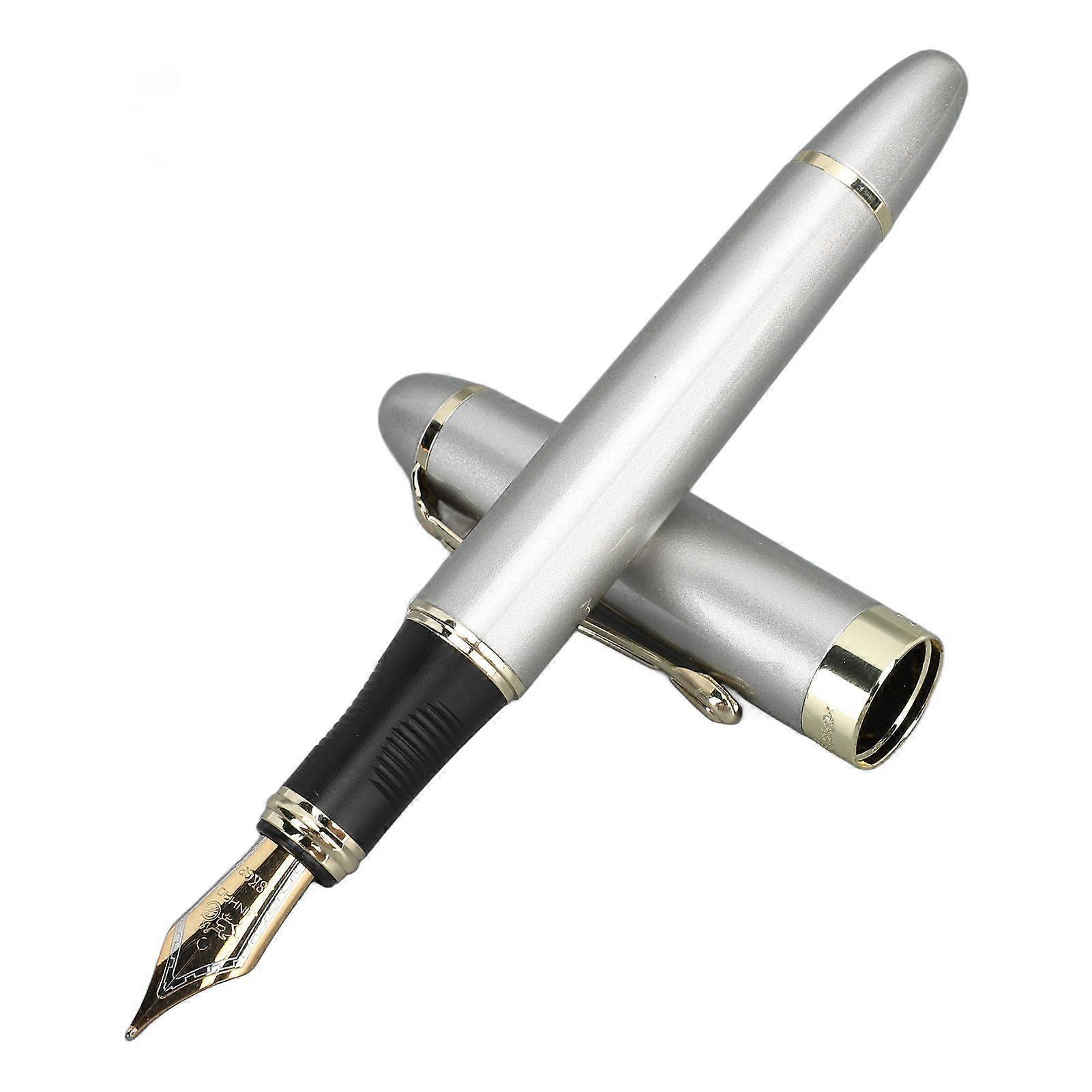 Fountain Pen 0.5mm Ergonomic Smoothly Writing Metal Business Fountain Pen with Pen Clip Ink Pen for Meeting Signatures Champagne Silver 0.5mm Straight