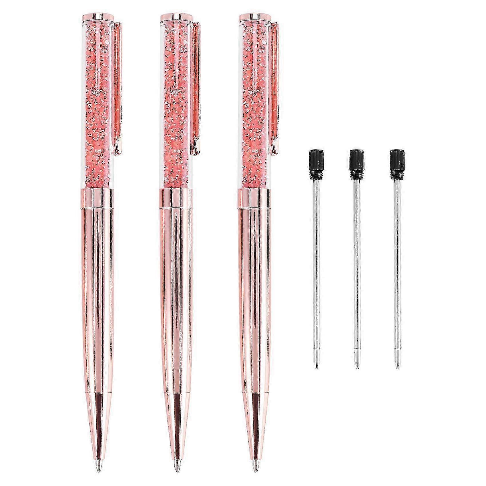 Rose Gold Pen with Bling Crystal Ball Point, Black Ink & 3 Extra Refills - 3 Pack Stylish Writing Set