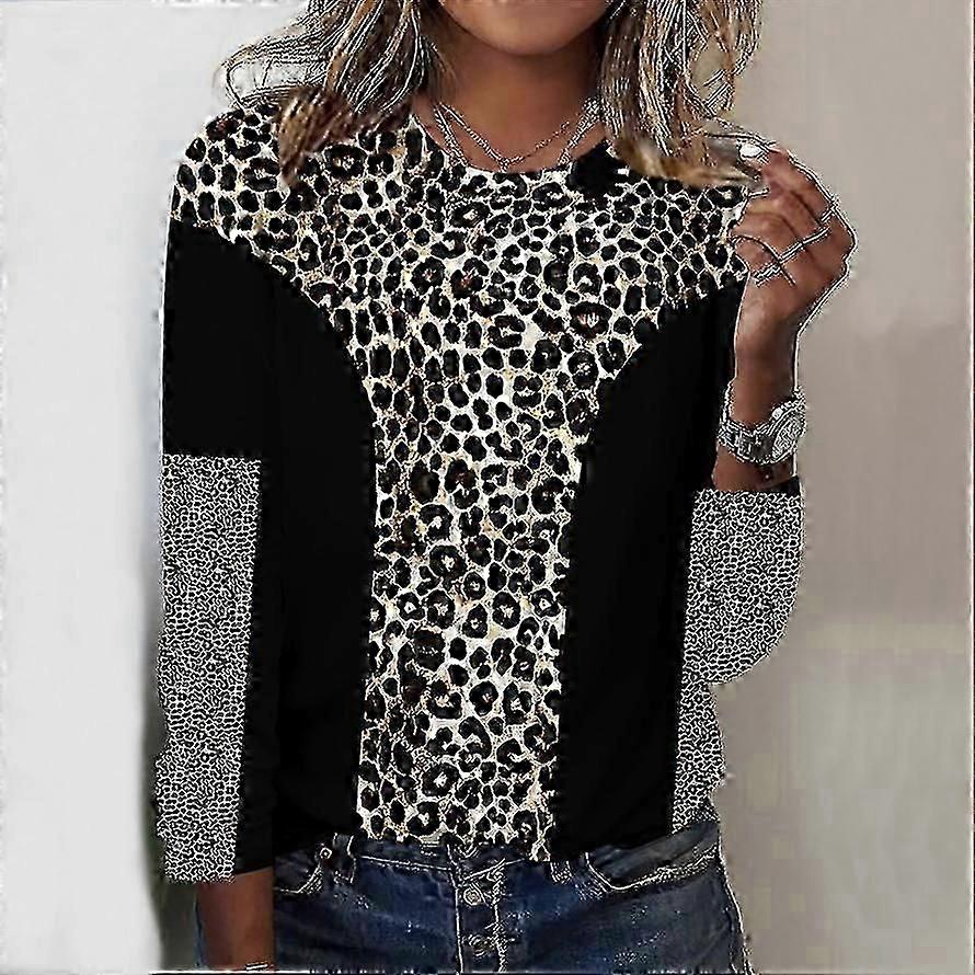 Tops For Women Leopard Print Print Round Neck Long Sleeve T-shirt Fall Casual Slim Pullover Women's Long Sleeve Top