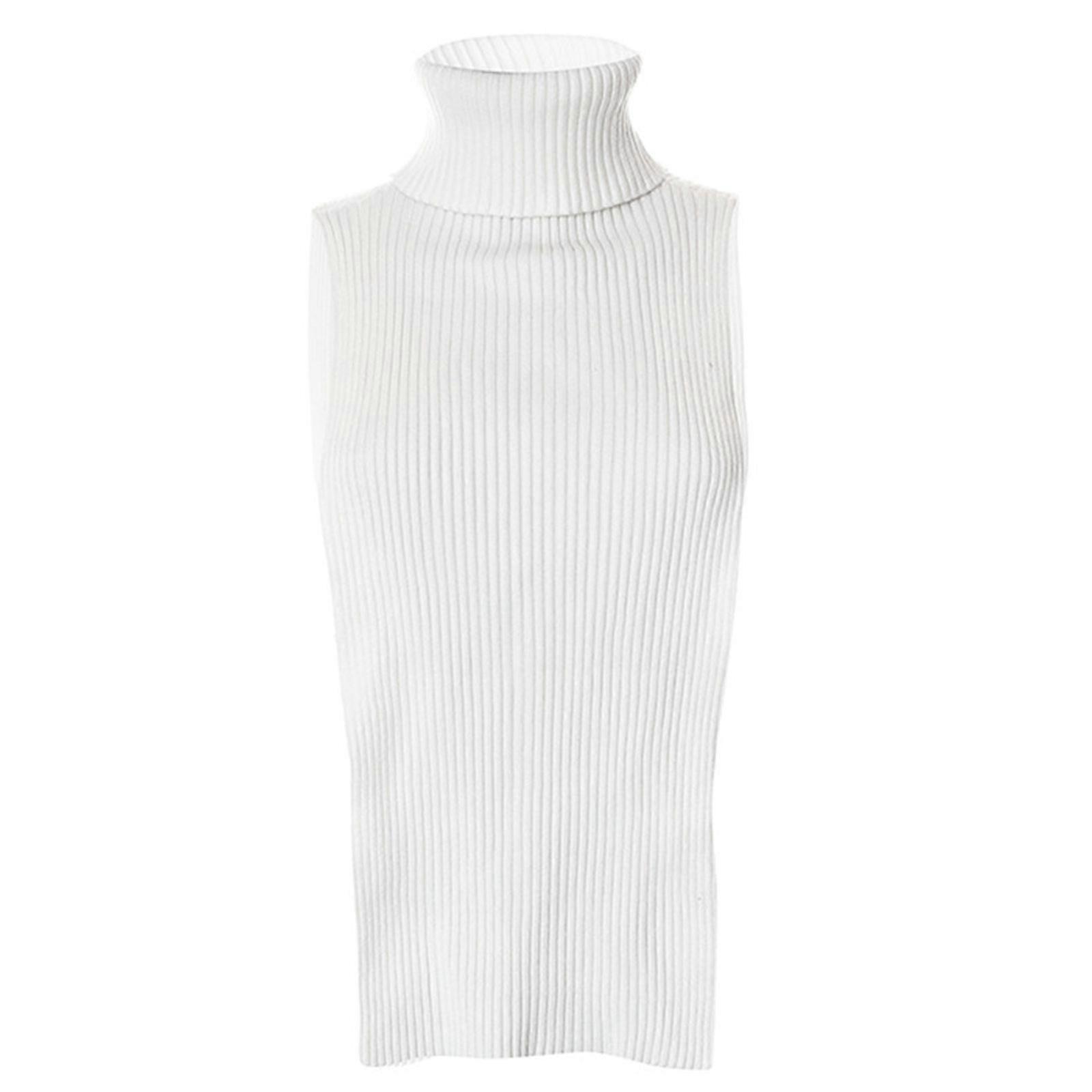 Turtleneck Knit Tops Summer Side Opening Sleeveless Camis Women Korean Clubwear