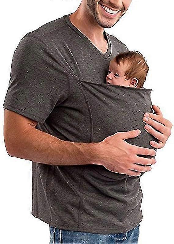 Men's Baby Strap Shirt, V Neck Short Sleeve Kangaroo T Shirt, Comfortable Breathable Cotton Kangaroo Shirt For Dad And Baby 2024 New