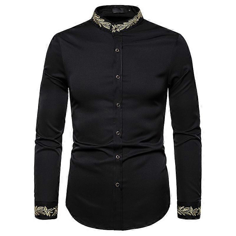 Mens Embroidered Shirt Long Sleeve Shirt Casual Slim Fit Shirt