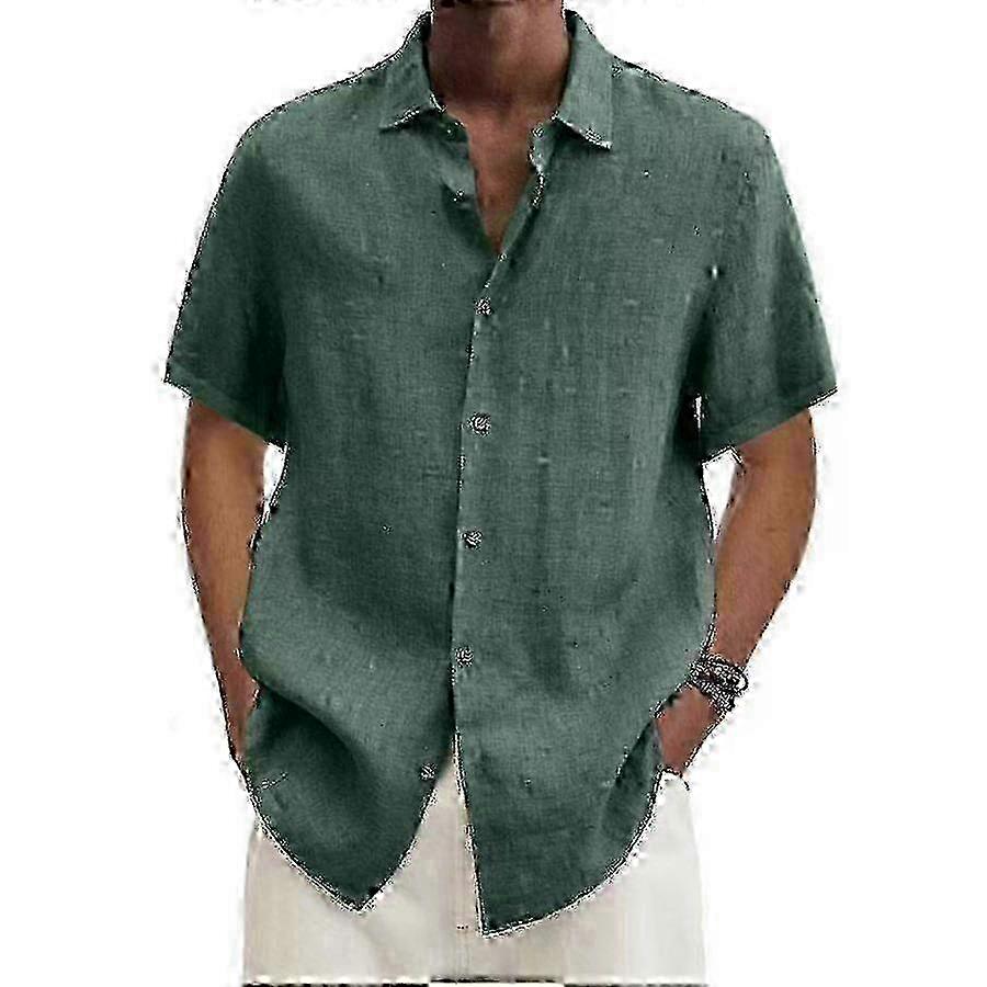 Men's Button-Up Lapel Shirt in Solid Cotton and Linen Blend