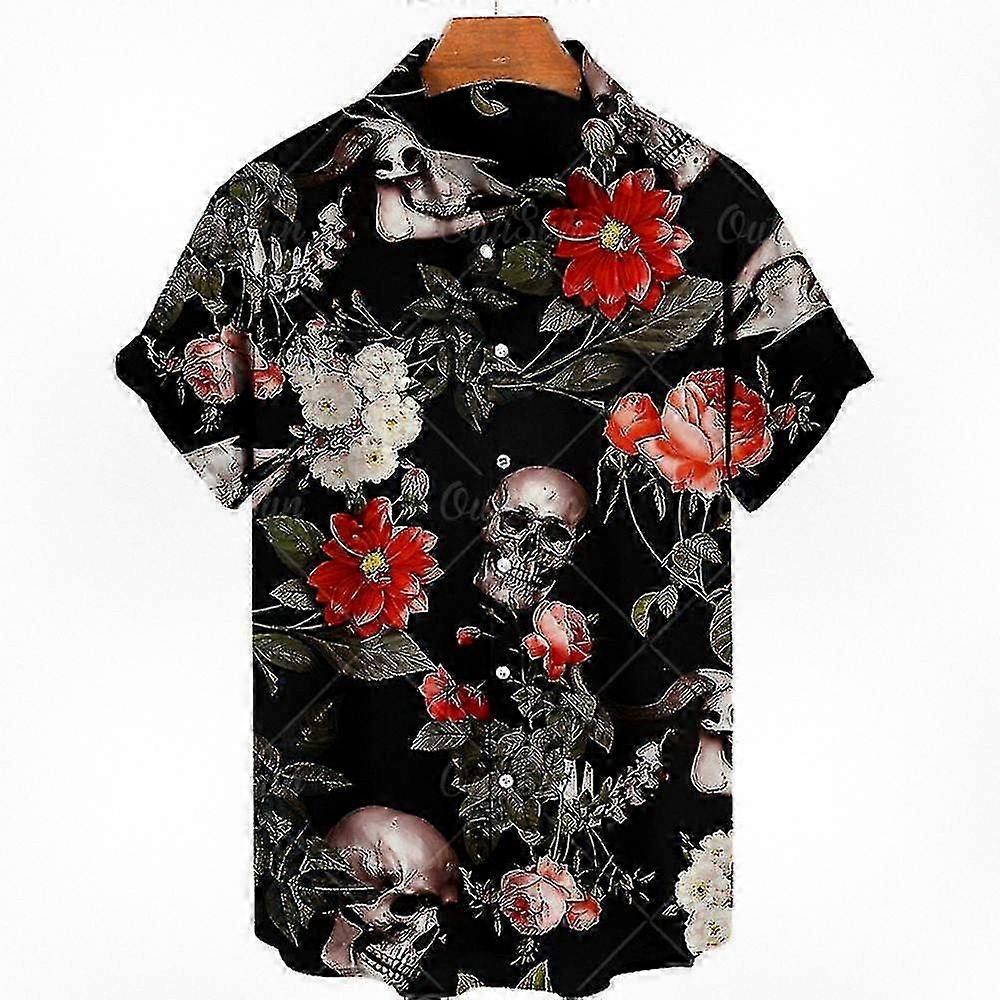 Men's Floral Short Sleeve Hawaiian Shirt and Casual Skull T-Shirts Suitable for Various Brands