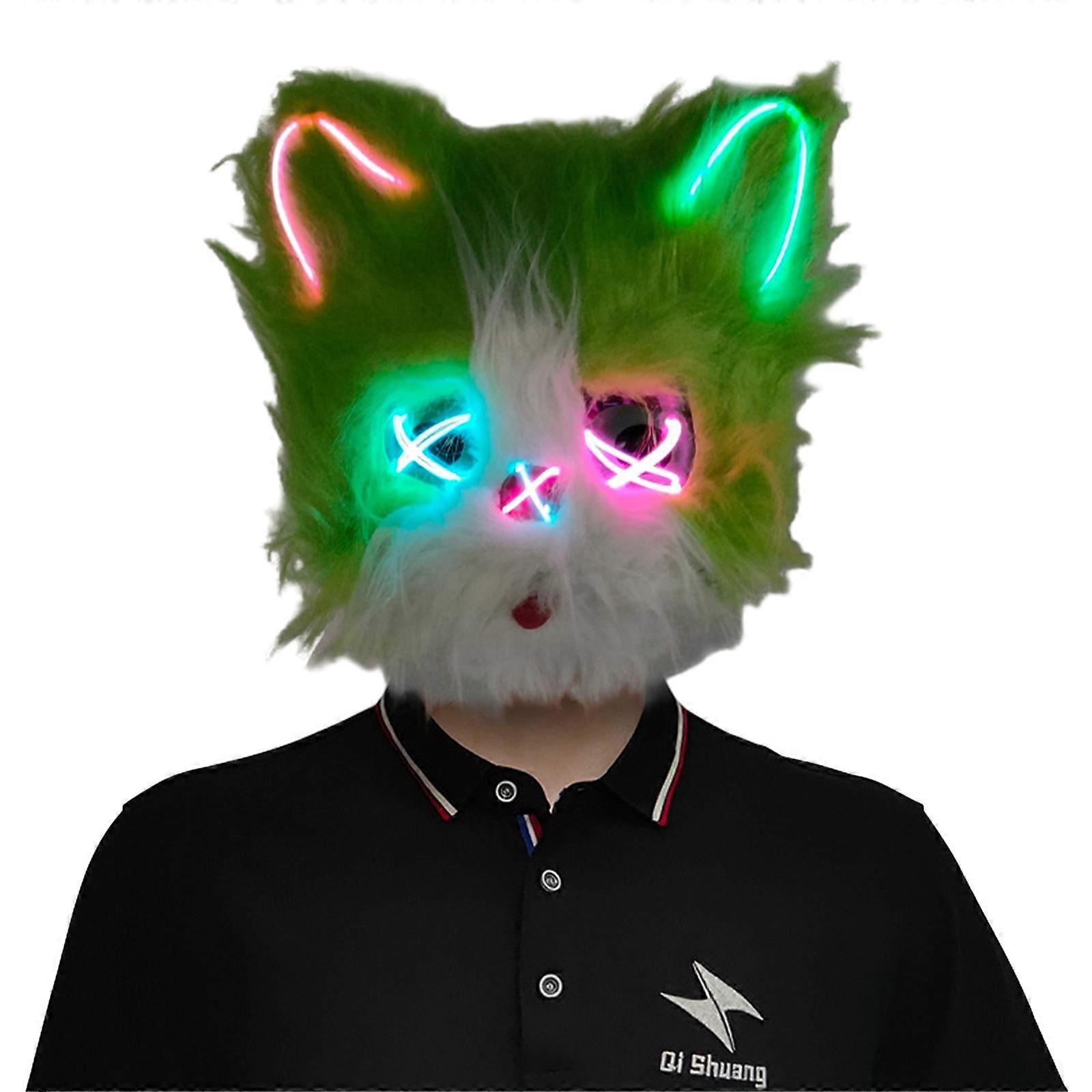 Funny Halloween Mask Realistic Animal Cat Mask Cosplay Costumes Full Face Mask Led Light Up Cat Mask for Adults Kids F