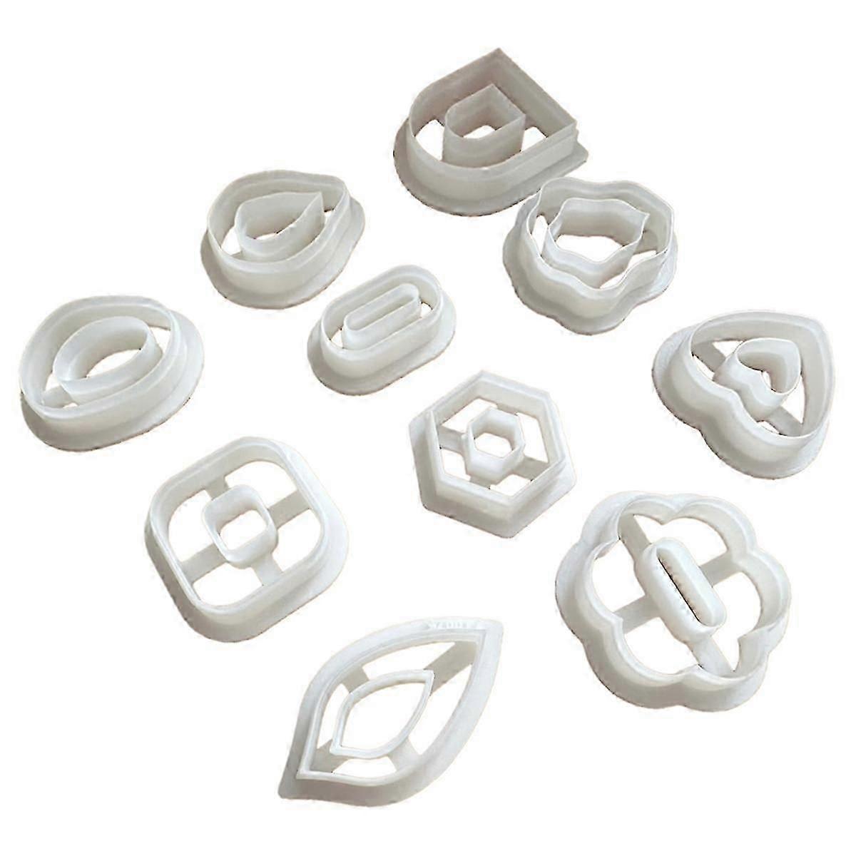 This package contain 10 characteristic shapes of polymer clay earring cutters, will help you create personalized earrings. Our polymer clay cutters for earrings are made by 3D printer, with 0.4mm(0.1mm) , providing a smoother and more comfortable cutting experience. Tips for making polymer clay jewelry: We suggest you prepare some cornstarch or baby , dip the cutter in some cornstarch before pressing it onto the polymer clay plate, this will help you release the polymer clay pieces. CARE NOTE: Please hand wash with warm soapy water or wipe the polymer clay cutter with alcohol after use. Dishwasher and high temperature may deform the shape. Colour:As Shown Material:Plastic Package Contents: 1set * polymer clay cutters Only the above package content, other products are not included. Note: Light reflection and different displays may cause the color of the item in the picture a little different from the real thing. The measurement allowed error is +/- 1-3cm.