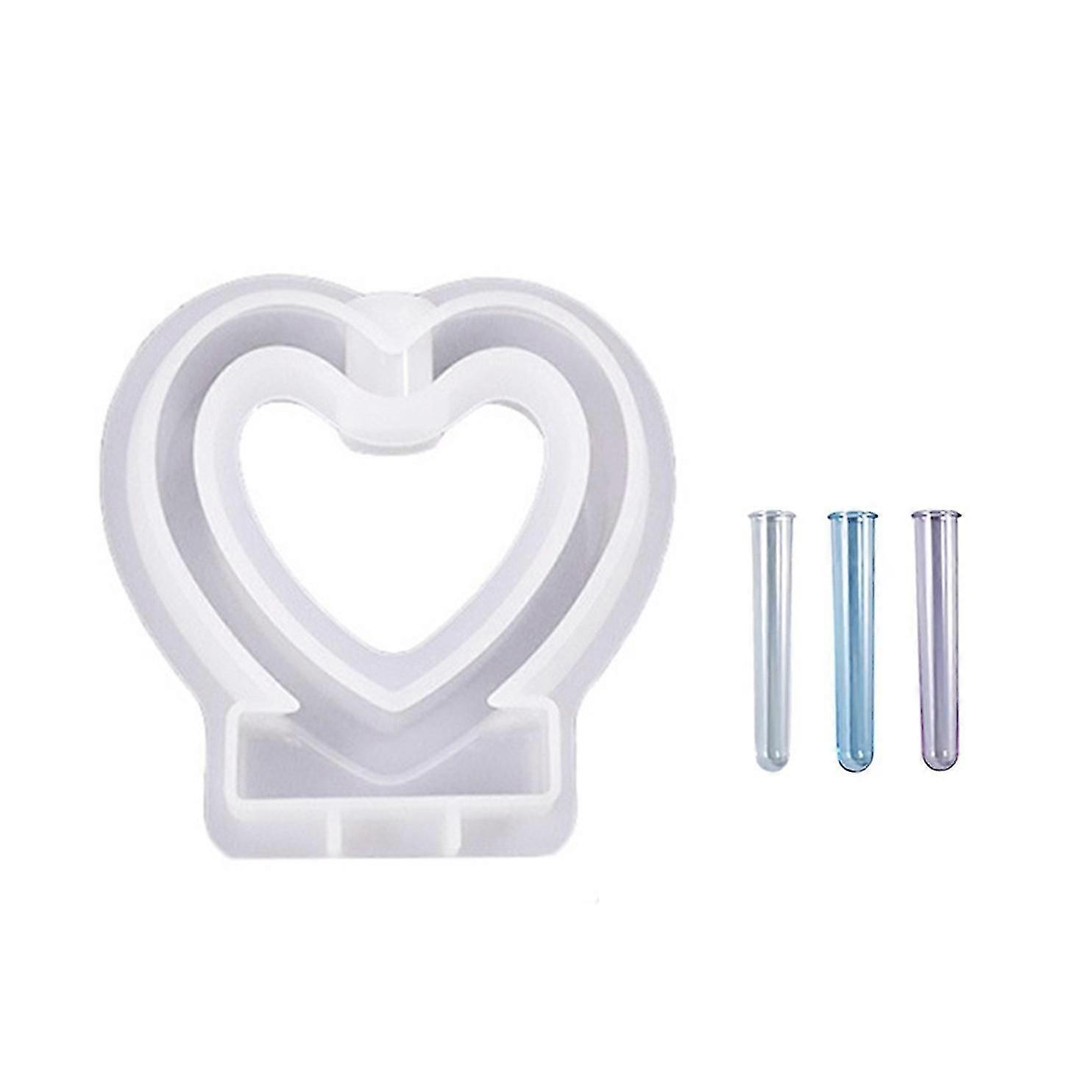 Heart Shaped Epoxy Resin Molds With 3 Test Tubes For Hydroponic, Flower Holder, Home Office Decor, Valentines Day Gift