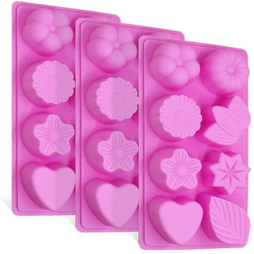 Cake Pans Molds 3 Pack Floral Leaf Silicone Molds Cake Chocolate Pudding Jelly Soap Muffin Trays Pink