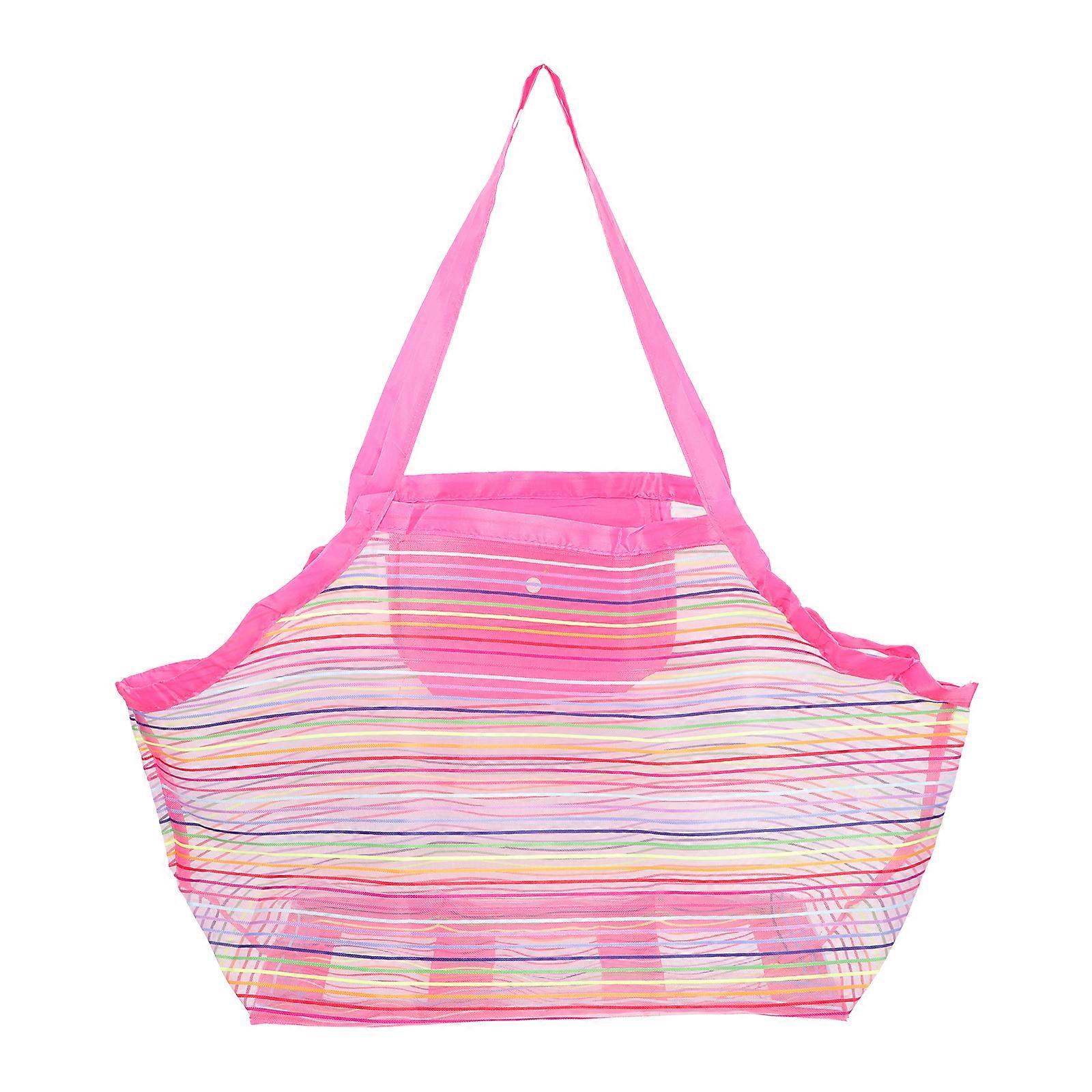 Rainbow Color Beach Bag Portable Beach Toy Handbag Kids Seashell Mesh Pouch