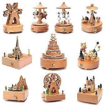 كاروسيل مربع موسيقي خشبي الموسيقى الخشبية الحرف اليدوية الرجعية هدية عيد ميلاد خمر اكسسوارات الديكور المنزلي يوم عيد الميلاد