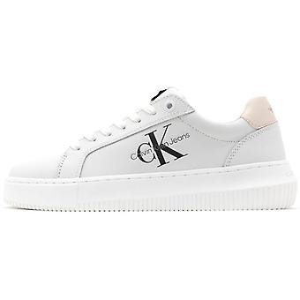 Calvin Klein Jeans Chunky Cupsole Monologo White Peach Womens Leather Trainers