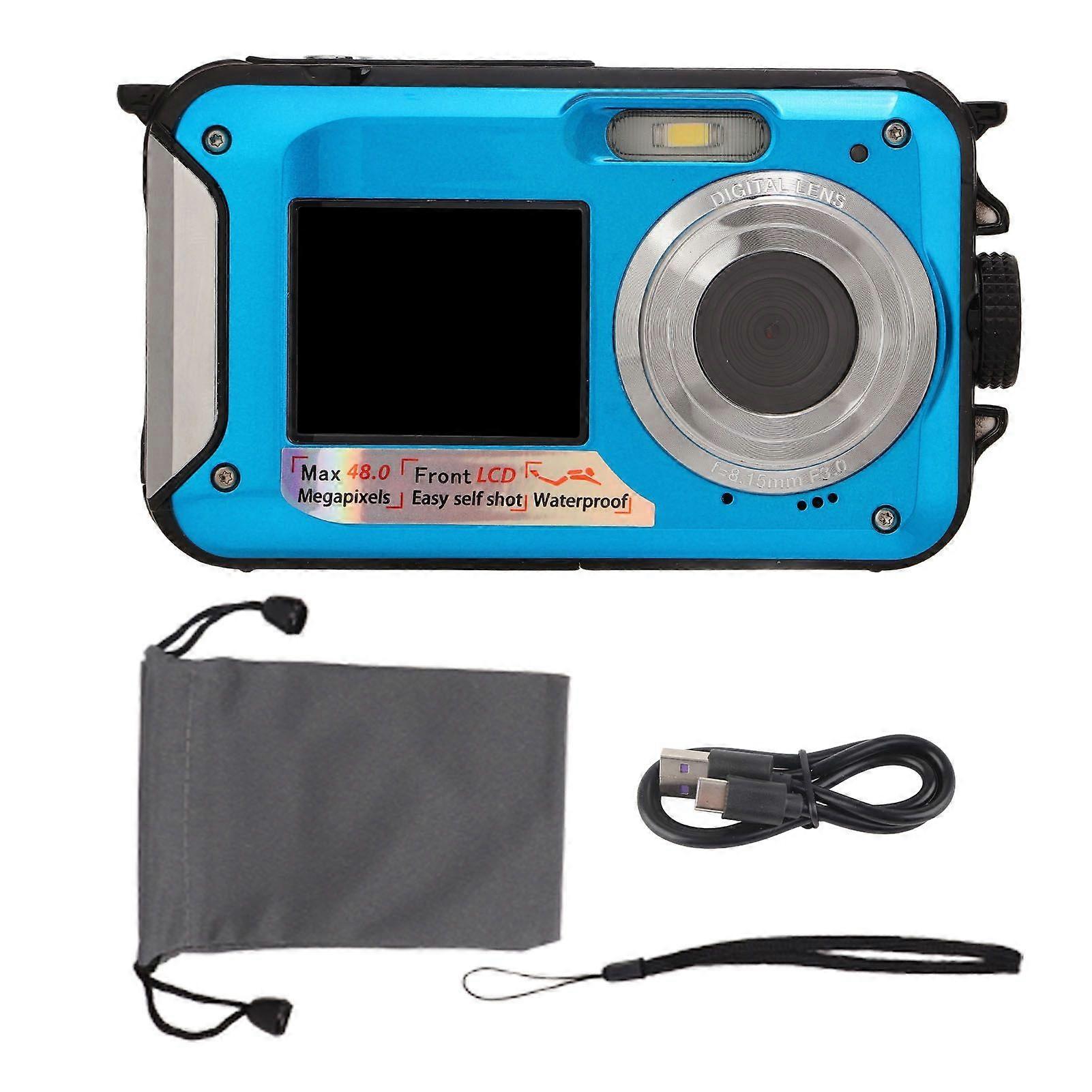 Full HD 2.7K 48MP 10ft Water Resistant Underwater Digital Camera 16X Digital Zoom Front Rear Double Screens Water Resistant Digital Camera Bleu