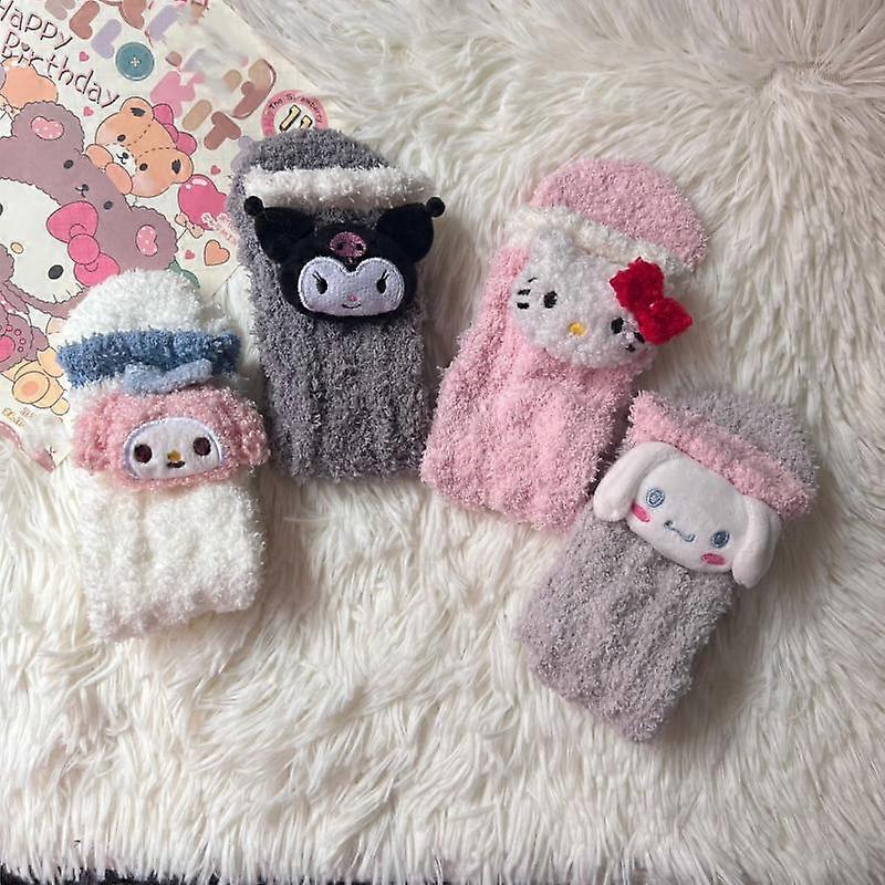 Kawaii Sanrio Anime Socks Cute Hello Kitty Kuromi Melody Coral Velvet Autumn Winter Lolita Socks Cartoon Warm Creative Girl Gift