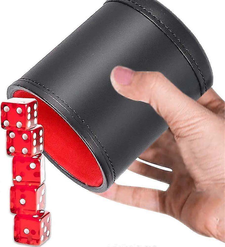 Leather Dice Cup, Soundproof Leather Dice Tray With 5 Red Dice Ideal For Entertainment Games, Bar, Travel, Party (black)