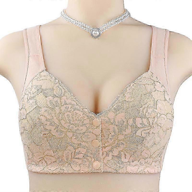 Fashionable Sponge Cup Breathable Front Button Middle and Old Age Underwear for Women Without Steel Ring Tank Top Lace Large Bra