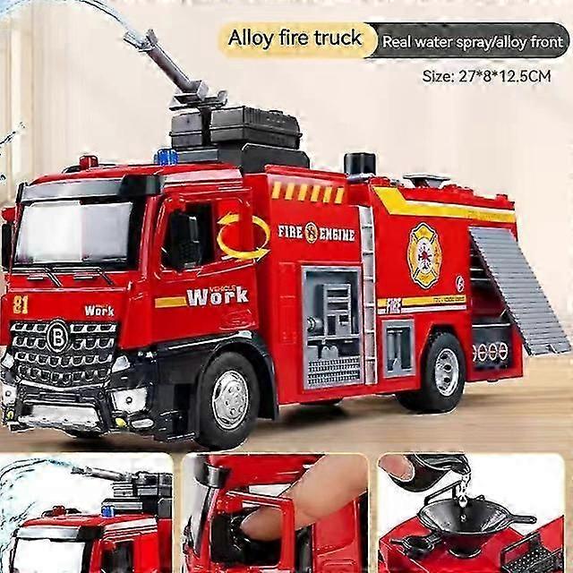 Large Size Alloy Diecast Engineering Vehicle Excavator Toy Fire Truck Model Simulation Sound Light Toys Christmas Gift For Kids