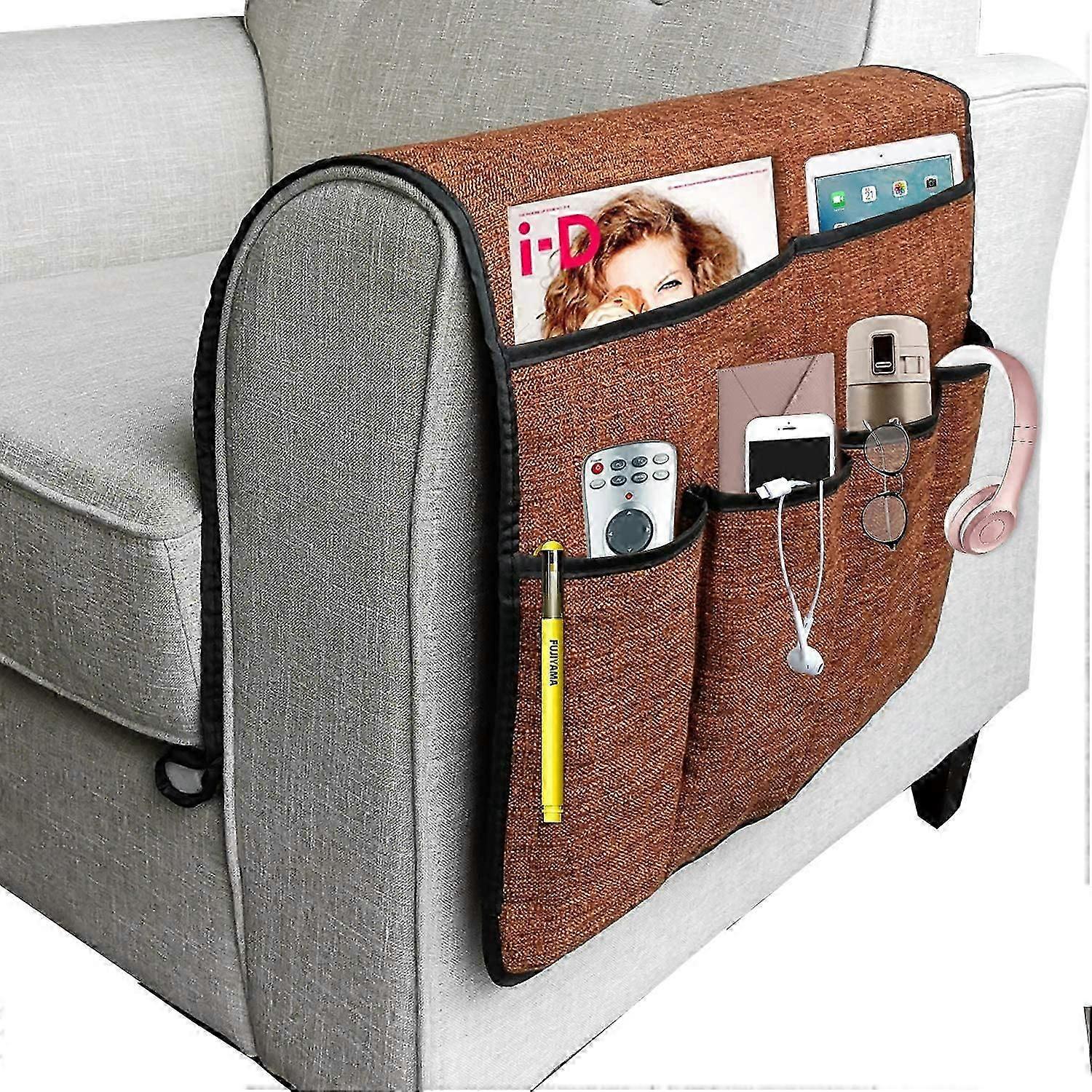 Large Sofa Organizer Caddy Organizer, Non-Slip TV Remote Control Holder Sofa Armrest Storage Bag, 19.7 * 35 inchCafe