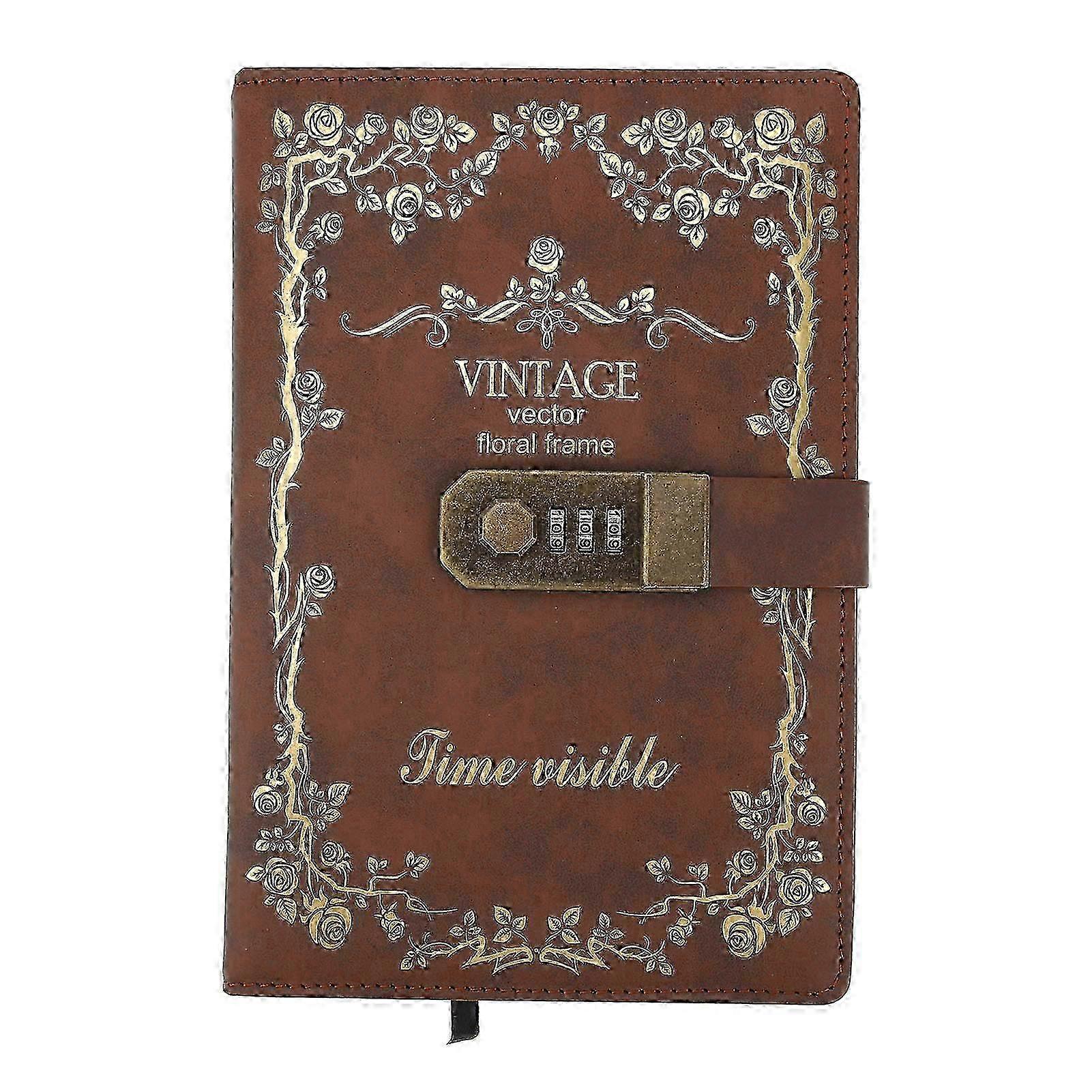 Password Book Multipurpose Portable Fashionable Exquisite European Style Vintage Lock Diary for Writing Coffee