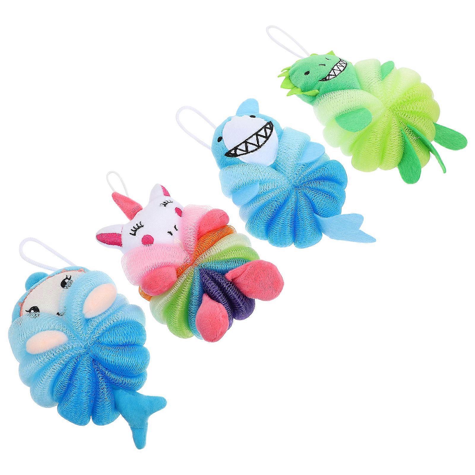 Children Shower Balls Featuring Creative Cartoon Animals For Shower Bath Use In Assorted Color For Soothing Skin 4Pcs