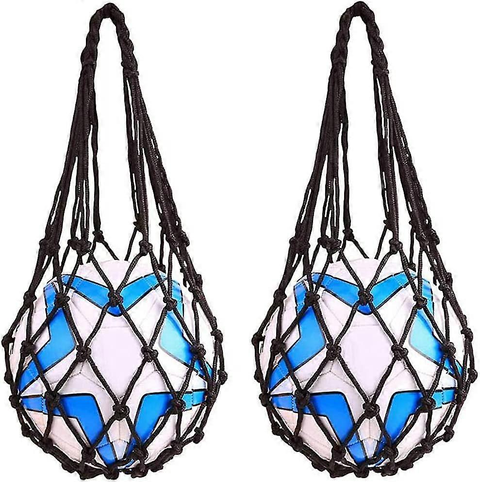 Basketball Net Bag Soccer Football Mesh Storage Sports Ball Holder Nylon Carry Bag Durable Single Ball Carrier(2Pcs,Black)