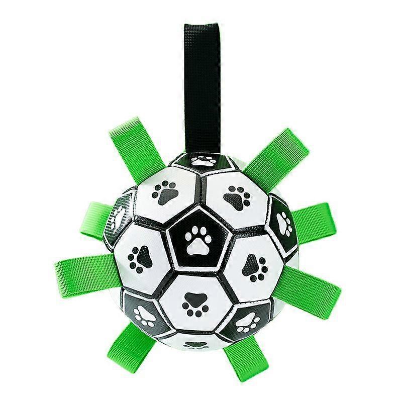 Dog Soccer Ball Toy Bite Resistant Inflatable Interactive Molar Pet Football Tug Toy with Straps for Small Large Dogs