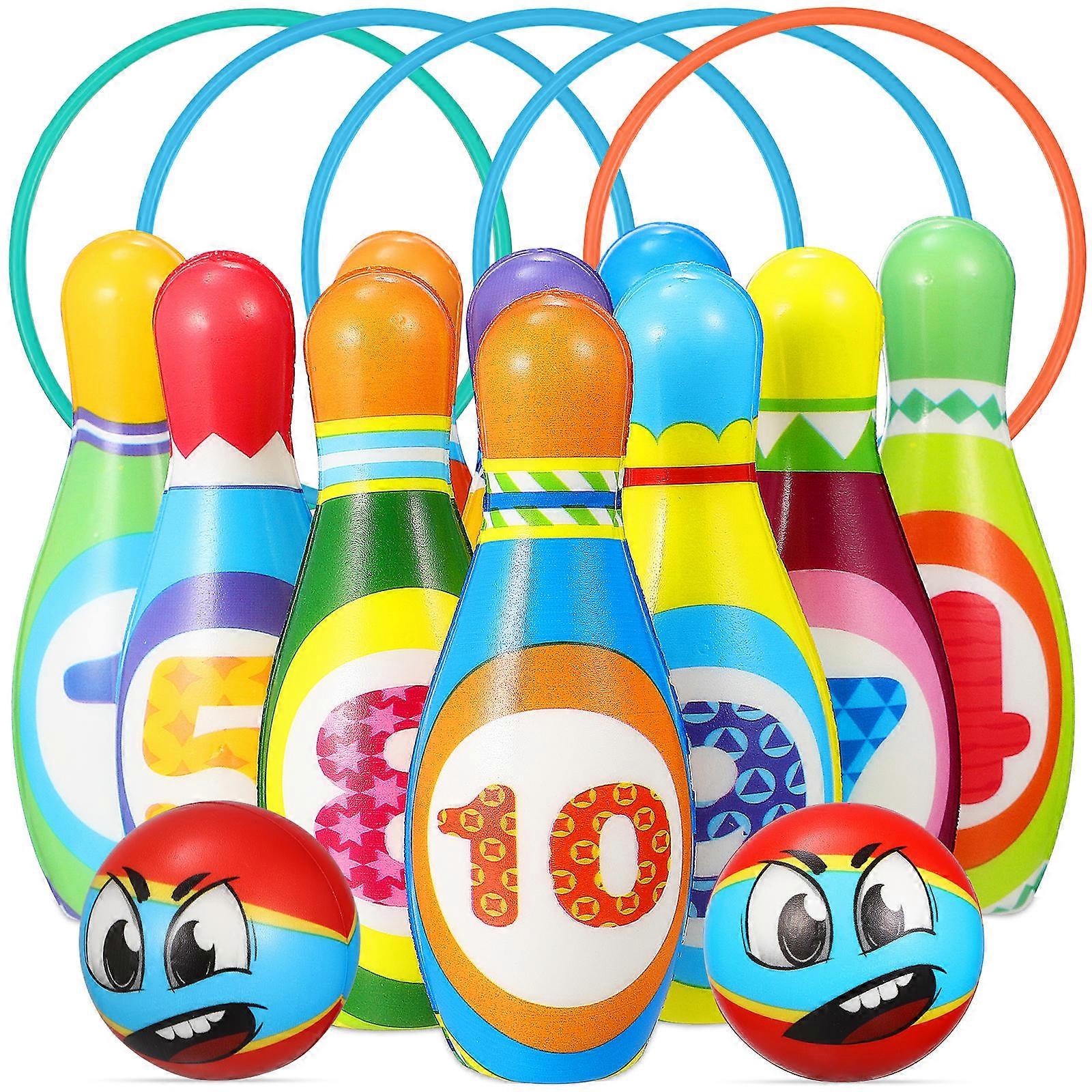 Durable Bowling Ball with Large Pins, Toss Rings, Safe Material, Educational Indoor Outdoor Family Games and Party Fun, Random Color