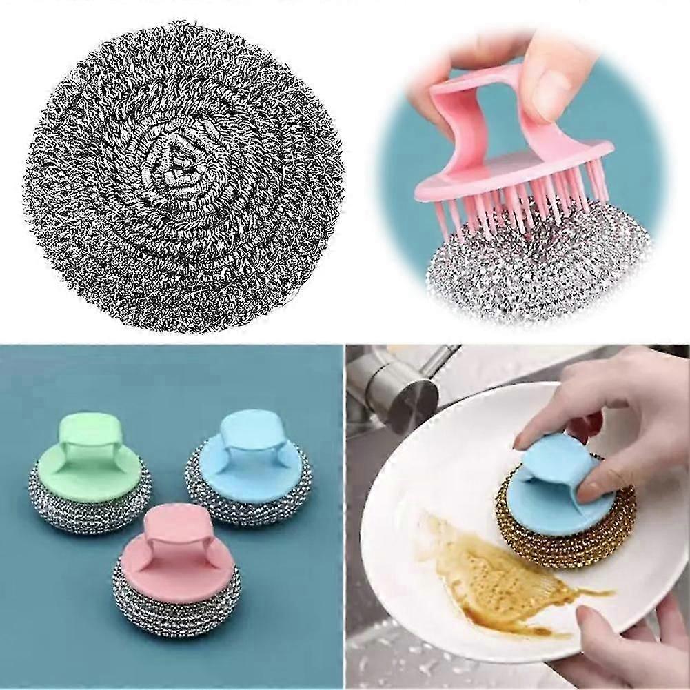 Stainless Steel Cleaning Ball With Handle Anti-Rust, Kitchen Pan Bowl Cleaner