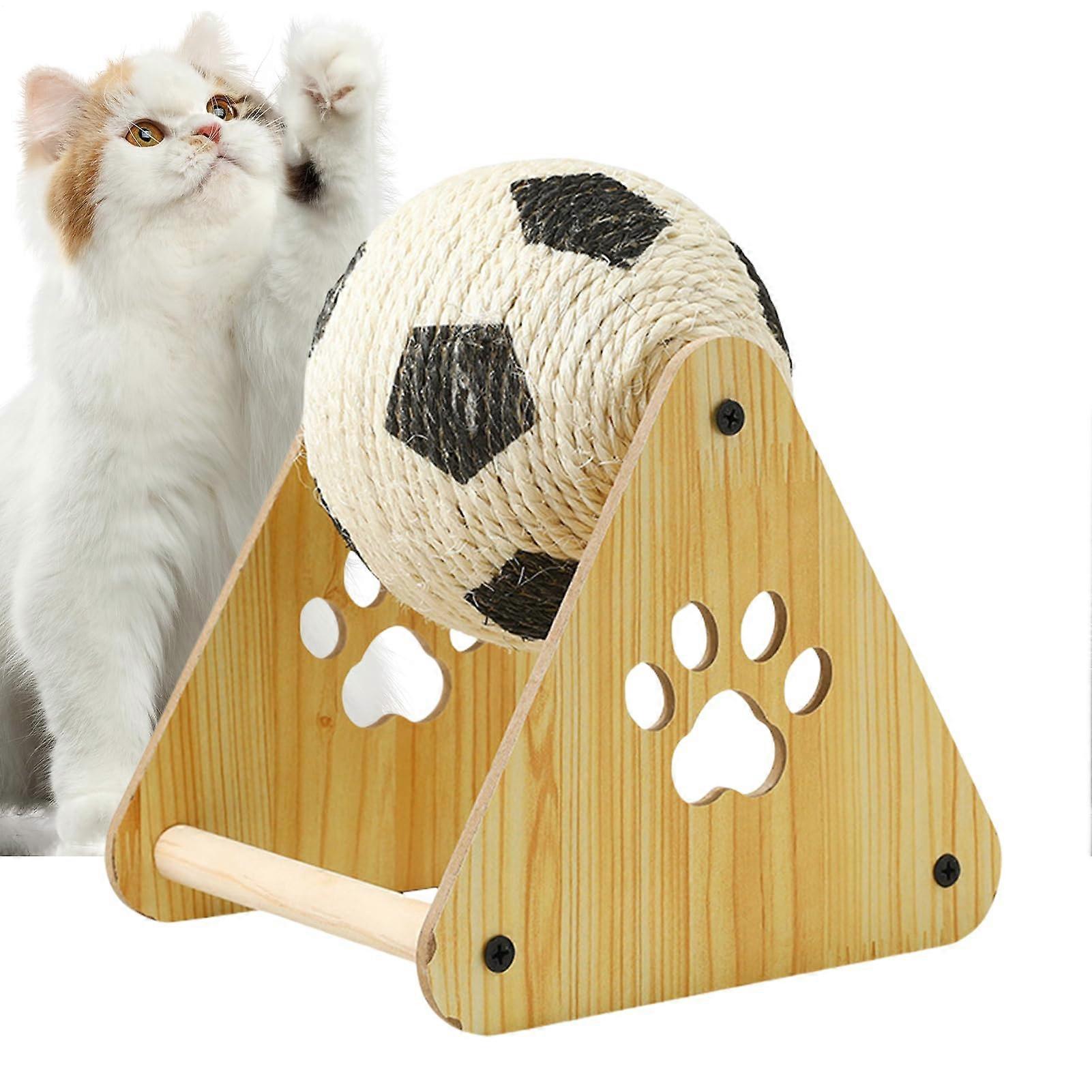Scratch Ball for Cats, Sisal Toy with Wooden Base, Nail Care Ball for Small Cats