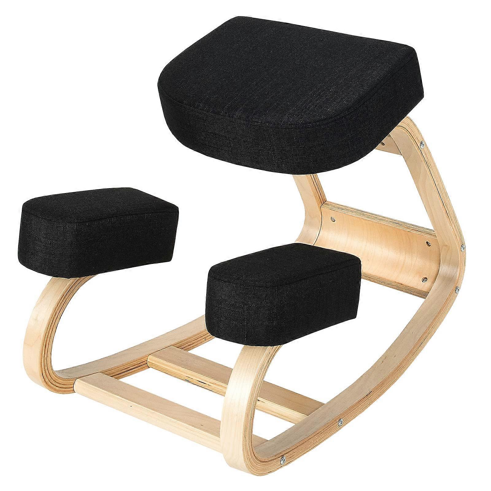 Ergonomic Kneeling Chair with Soft Padding, Rocking Design for Back Pain Relief, Wooden Knee Desk Chair for Home Office Meditation