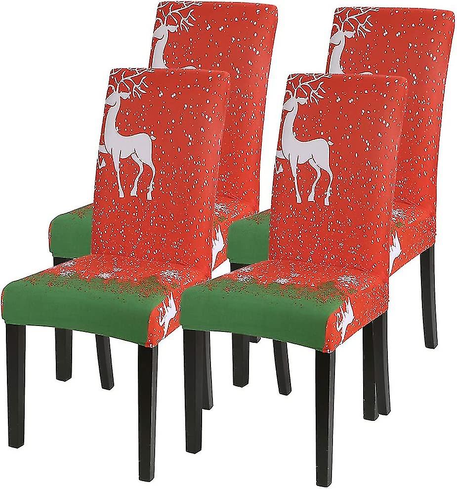 Christmas Dining Room Chair Covers Set Of 4, Stretch Xmas Chair Slipcovers Protector, Spande