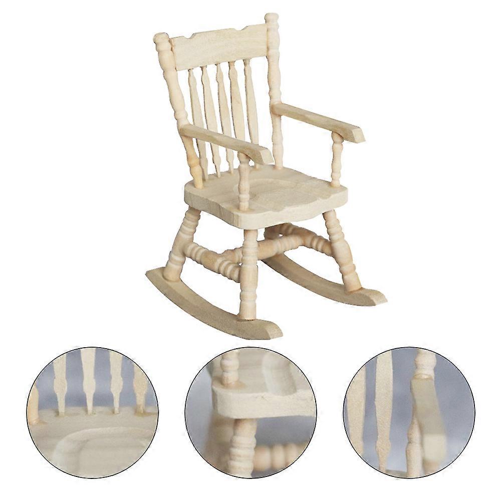Mini Rocking Chair Decorative Toy Model Accessory Beige Color 3.34X2.59X1.85Inch Craftsmanship Design For Dollhouse Furniture 1Pack