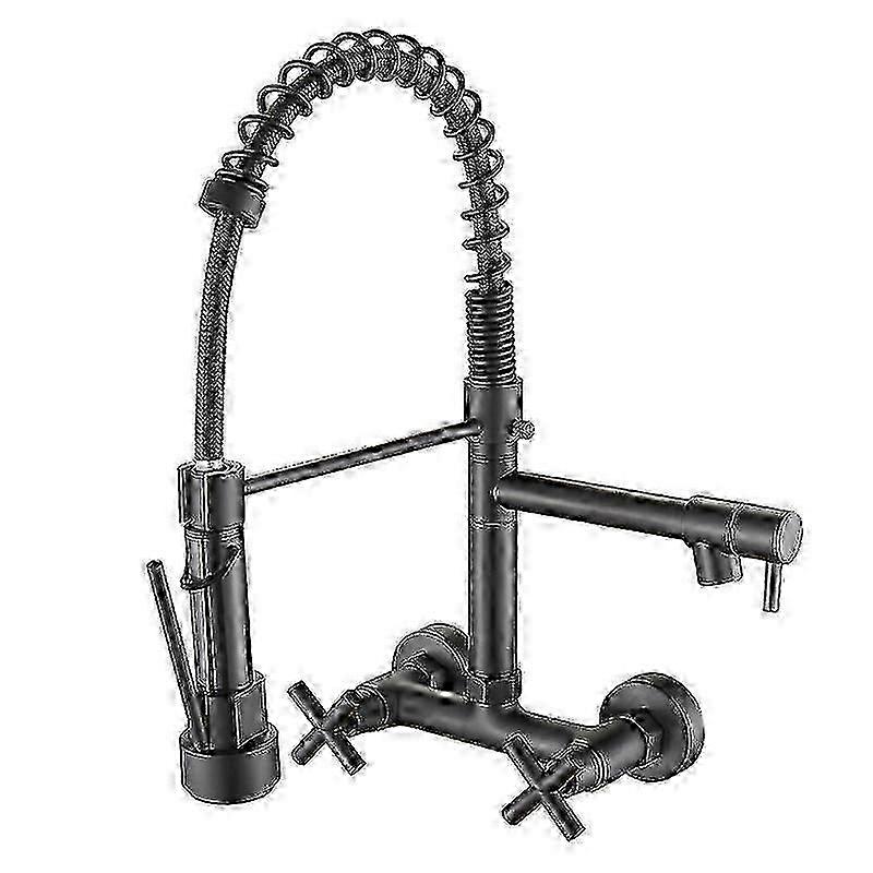 Chrome/black Kitchen Faucet Dual Handles Hot Cold Water Kitchen Mixer Tap Wall Mounted Dual Swivel Spout Spring Pull Down Faucets