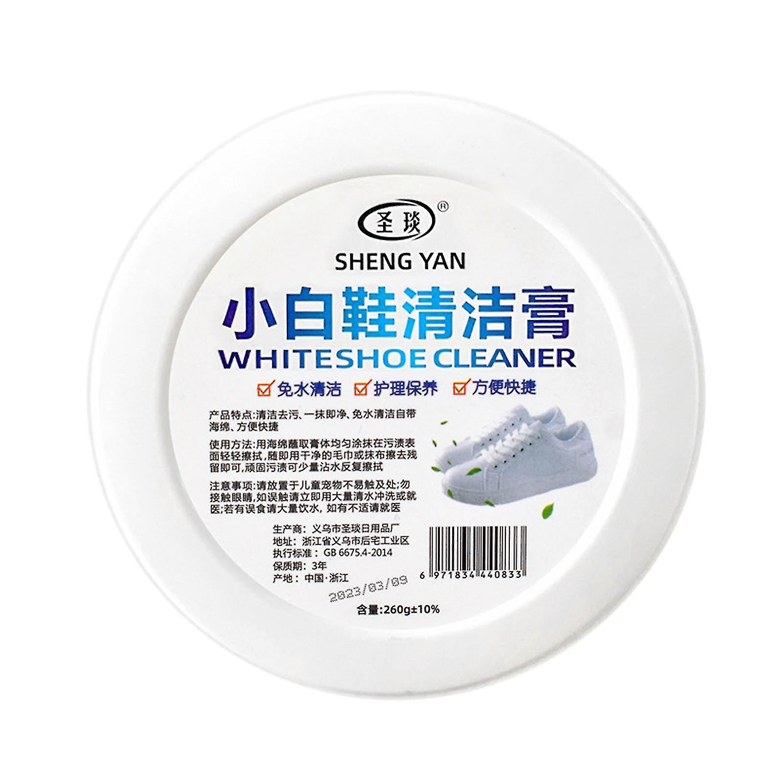 White Shoe Cleaning Cream Multi-functional Cleaning, Brightening, Whitening And Yellowing Maintenance For Sports Shoes, White Shoe Stain Whitening Cleaner Features: Mild and Durable:The traditional way of brushing shoes is easy to damages the surface of shoes, resulting in peeling, degumming, pilling, and other problems of the upper. Effective Dirt Removal:Active decontamination dissolves, effectively dirt with anhydrous cleaning paste, and adds penetrants to penetrate deeply into the upper. Keep your shoes as clean as new Application: small white shoes, travel shoes, leather shoes, household appliances, leather bags, car interiors, office facilities, etc. Don't Need To Water Wash:Decontamination and brightening, a double protective factor, cleaning, an isolation film is on the upper, which can isolate and stains. Use without water wash to stubborn stains from shoes easily and quickly. Quality Guarantee: If you have any problem with product, you can take contact us immediately, Product Product List: 1x Cleaning Cream