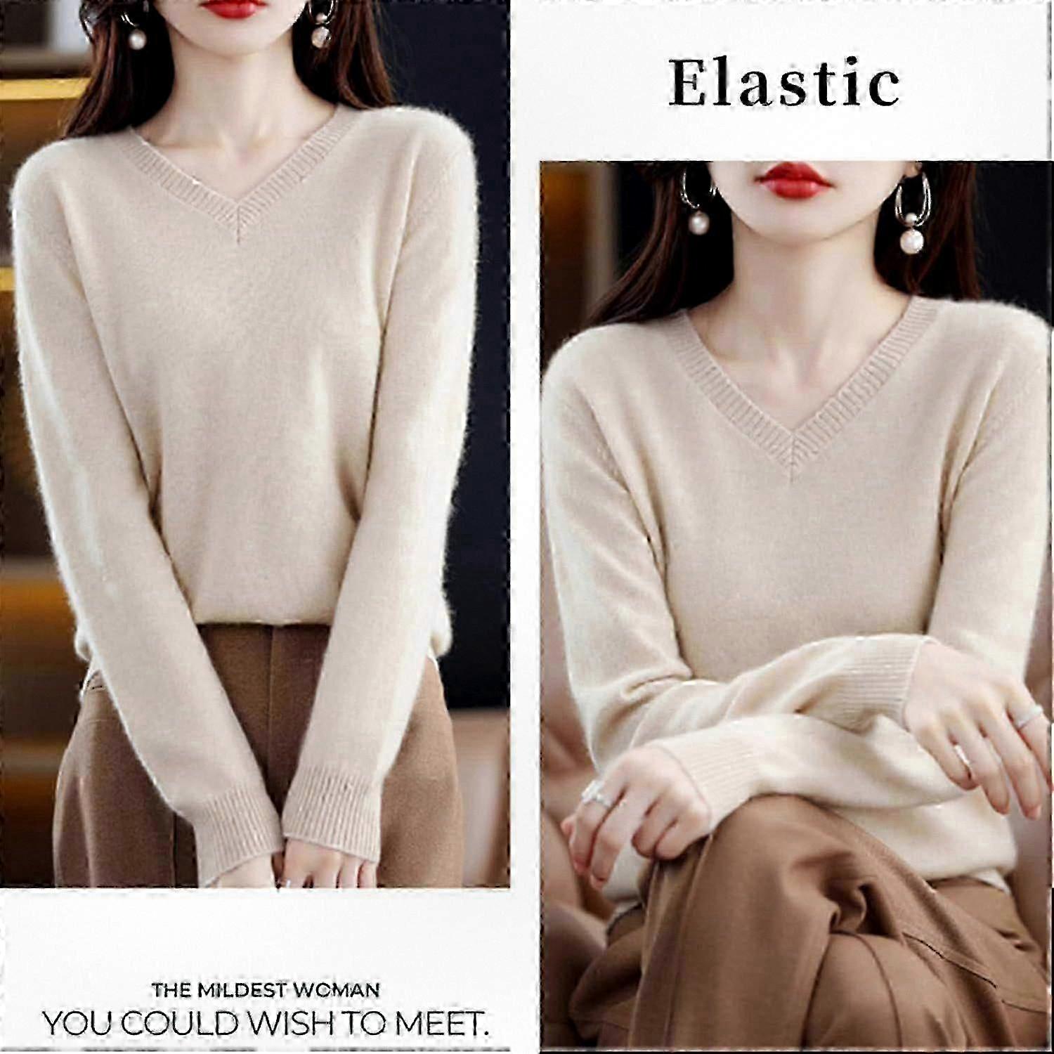 Cashmere V-Neck Long Sleeve Soft Pullover Sweater for Women - Premium Winter Warm Knitwear