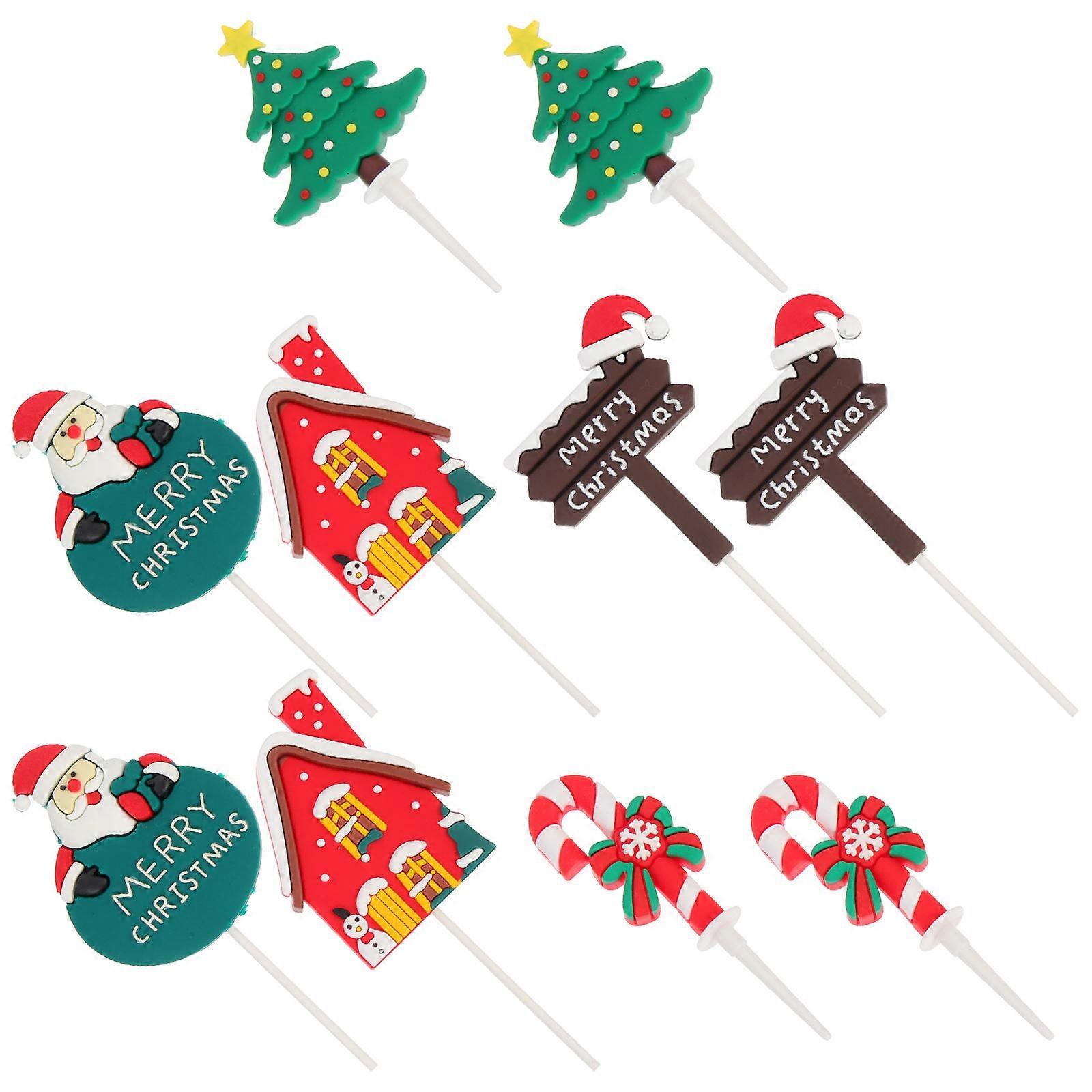 Christmas Cake Topper Plastic Pendant Santa Claus Sign Christmas Party Dessert Decoration 10Pcs
