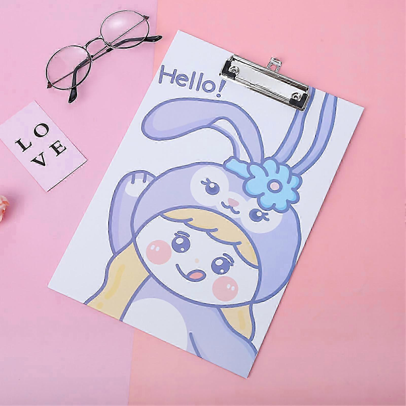 Clip Board Thickened Backing Plate Hook Hole Cartoon Lovely Plastic Board Metal Clip Stationery Gift Purple Rabbit Girl