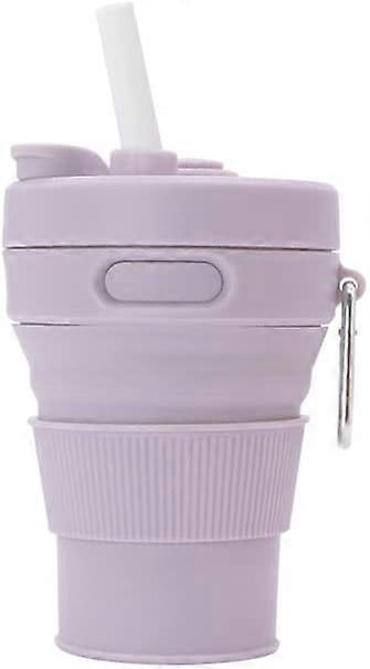 Collapsible Camping Cup with Straw Silicone Folding Coffee Cup Sport Bottle Portable Travel Outdoor Car 450ml 16oz Purple