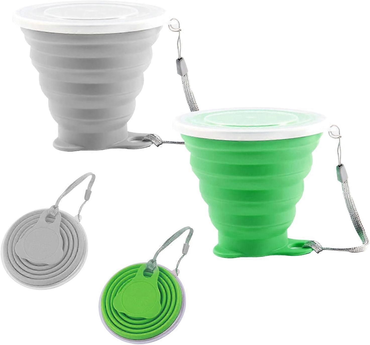 Silicone Foldable Cup Collapsible Travel Cup with Lid Silicone Folding Silicone Cups with Plastic Sealing Lid Reusable Portable Cup Set for Outdoor Ca
