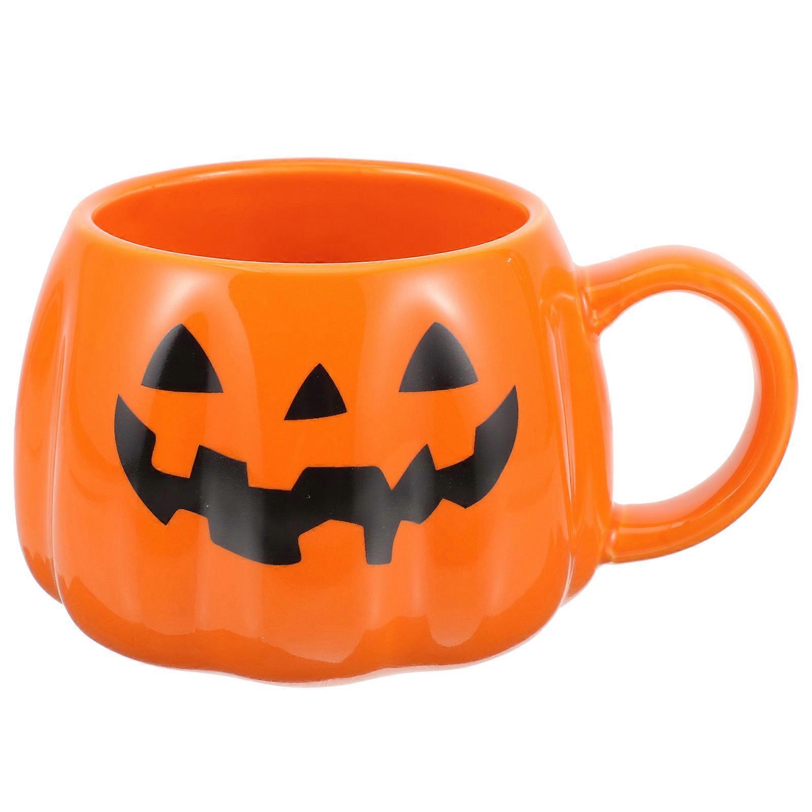 Halloween Pumpkin Shaped Ceramic Coffee Mug with Handle for Hot Chocolate, Tea, and Water – Non Damaging Base, Office Desktop Party Cup, Black