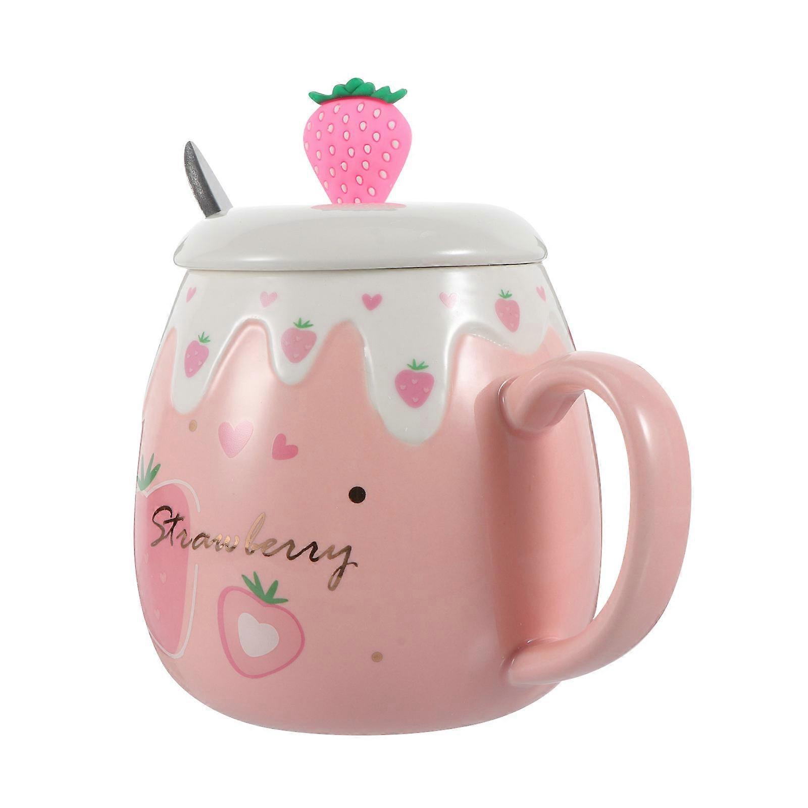 Cute Strawberry Ceramic Coffee Mug with Spoon for Hot & Cold Beverages – Ideal for Home and Restaurant Use