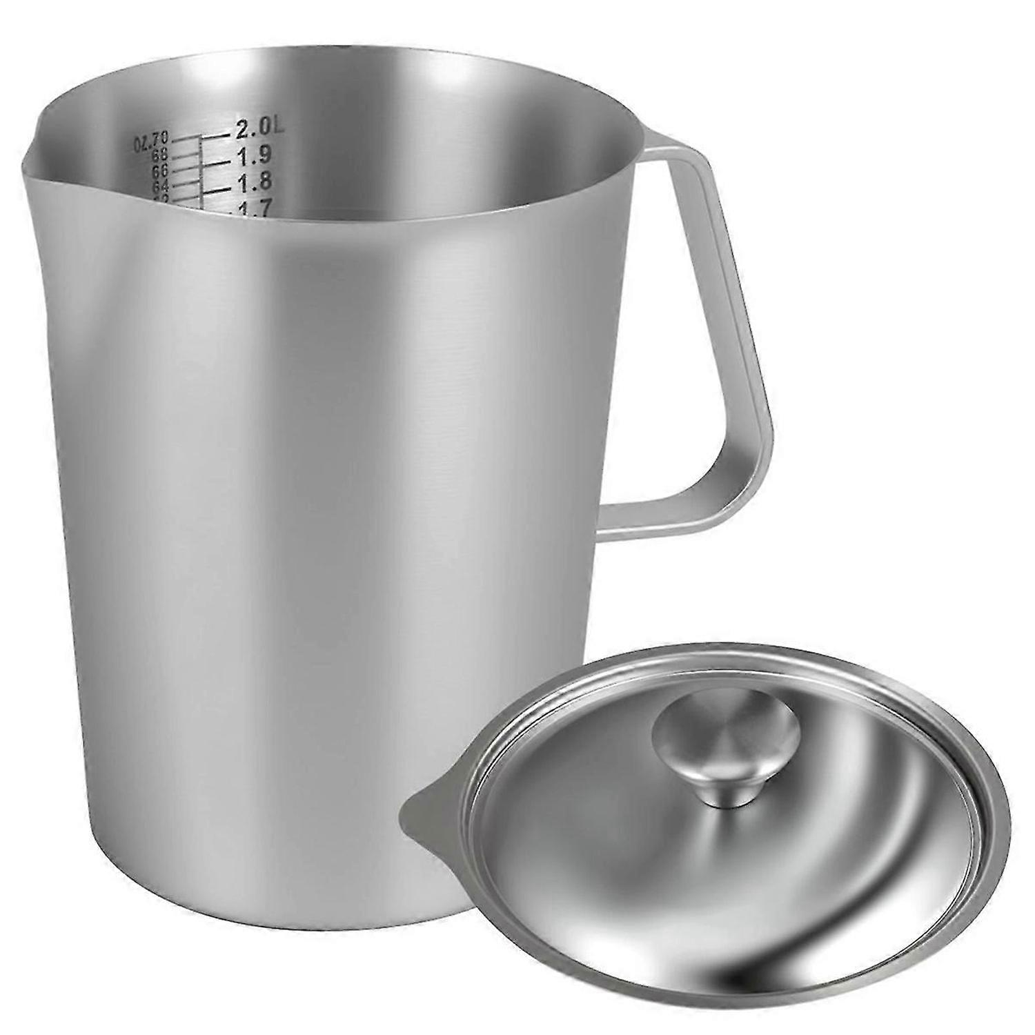 2L 304 Stainless Steel Measuring Cup with Lid and Marking Milk Pitcher for Restaurants for Cooking K