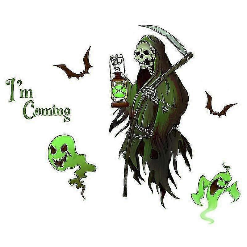 Grim Reaper Wall Decal Glow In The Dark Ghost Bat Grim Reaper Halloween Wall Sticker Halloween Wall Art Decal Scary Wall Decor