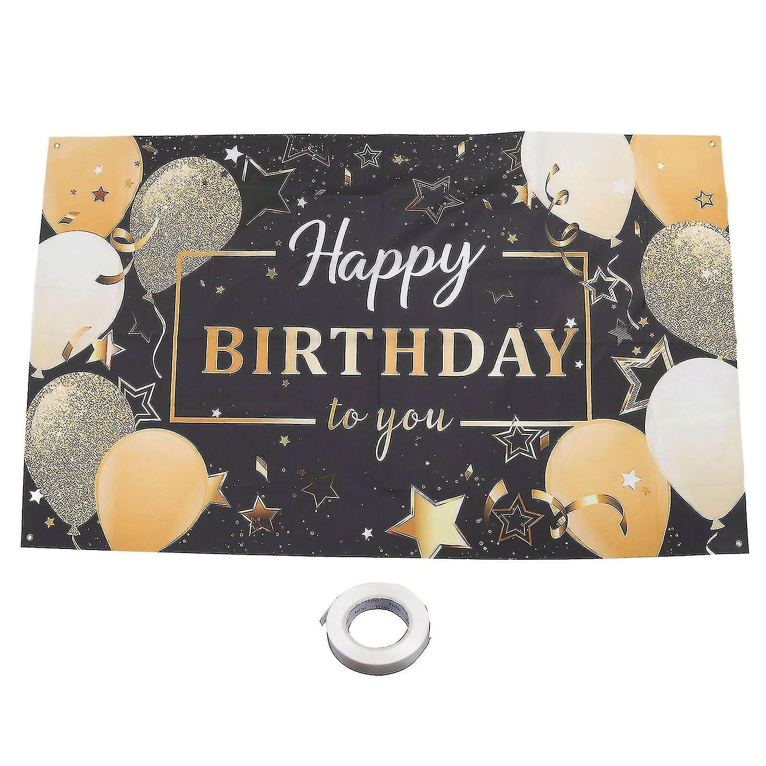 Glitter Birthday Party Backdrop Banner - Black and Gold Balloon Design