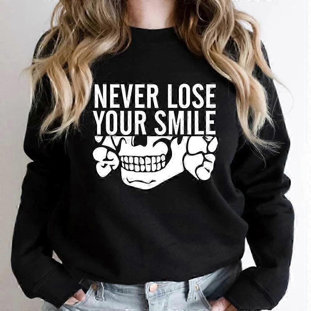 Never Lose Your Smile Sweatshirt Never Lose Your Smile Skull Funny Sweatshirt Men Women Crewneck Sweater Streetwear Pullovers