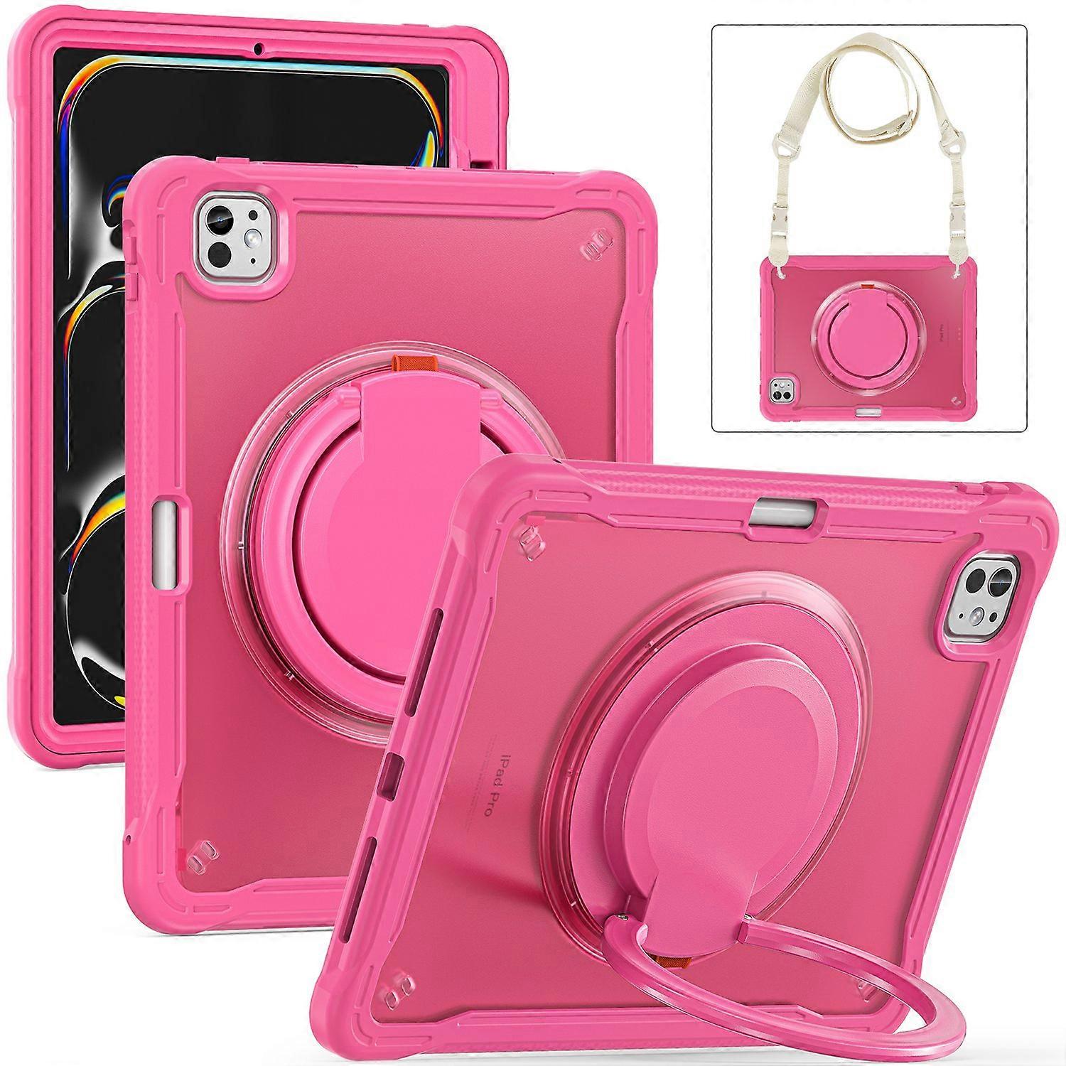 For iPad Pro 11 (2024) Case Rotary Kickstand PC+TPU+Silicone Cover with Shoulder Strap