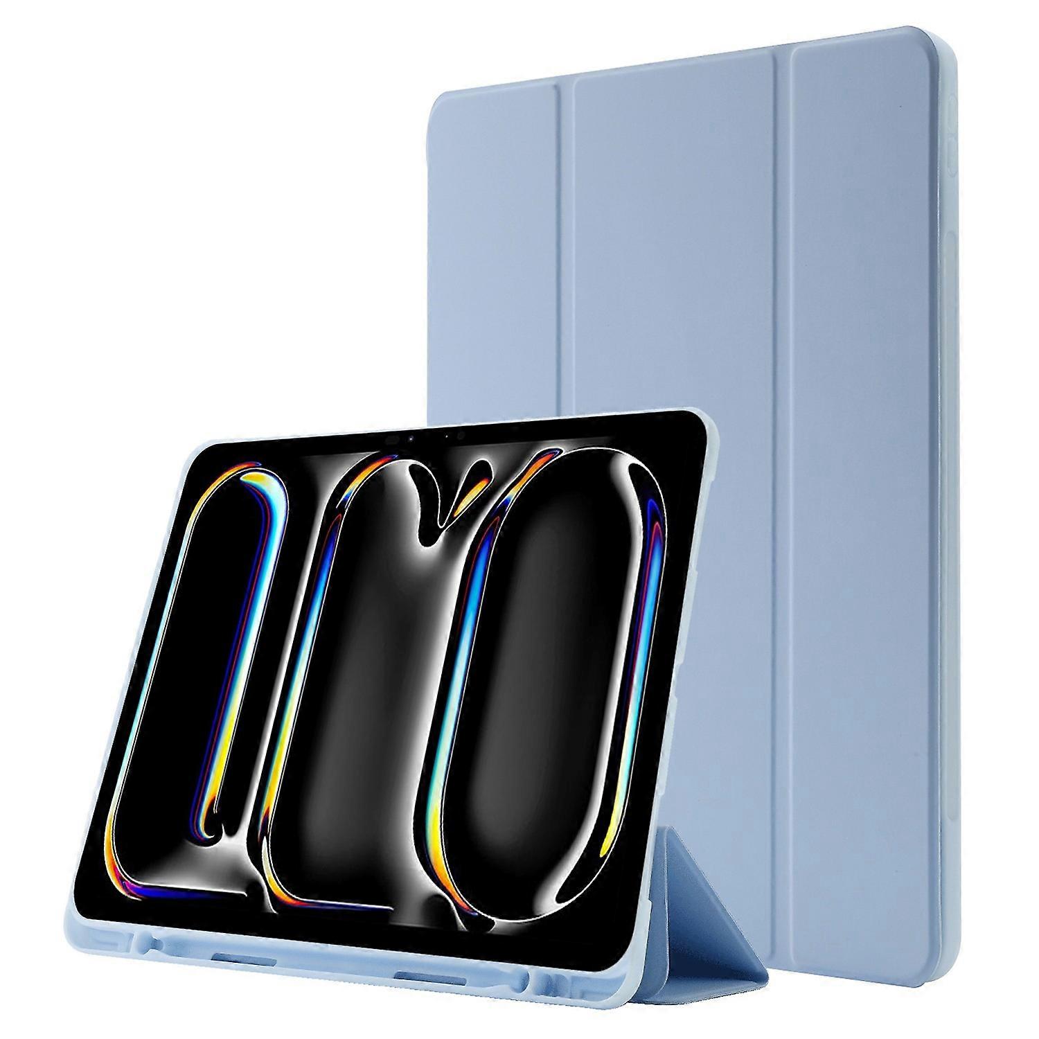 For iPad Pro 13 (2024) Case Skin-touch Leather Tri-fold Stand Tablet Cover with Pencil Holder