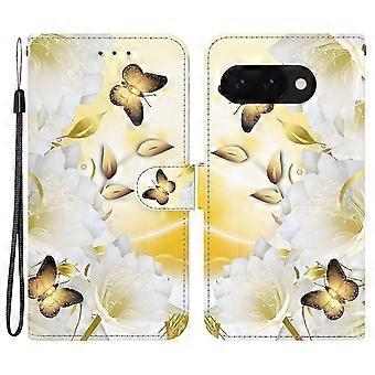 For Google Pixel 9a Wallet Phone Case Anti-Drop Leather Flip Cover Pattern Printing - Gold Butterfly